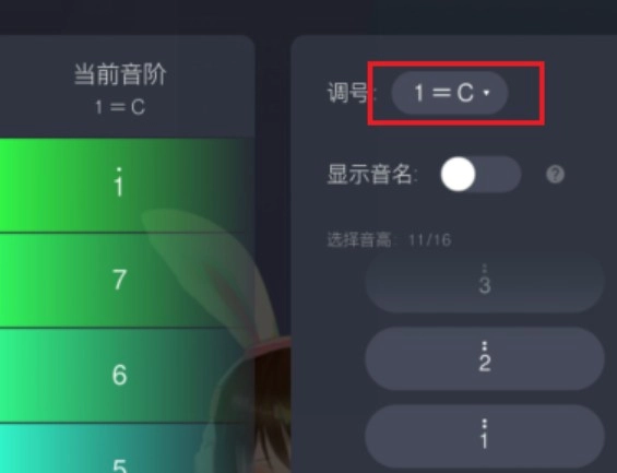 当然默认就是1=C,所以这里不用调整,但要是其他歌曲不是C调,您就得留意了,务必在调音前把调号改好,不然可能会造成不必要的麻烦。