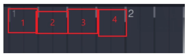 然后我们发现简谱里每个小节都有四个数字,而在调教界面中,每个数字对应的界面恰好有四个大格。