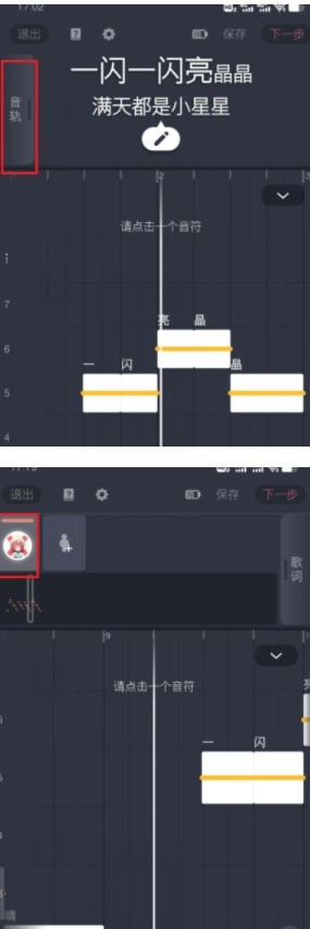 这下你该清楚了吧,把歌词音块依据简谱写定的位置,放进相应的格子里。