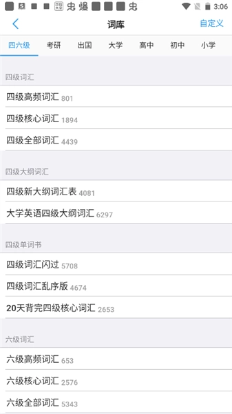 然后需要进行词库的设置,这里以四级高频词汇为主;
