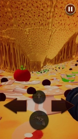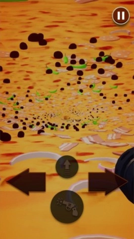 当你抵达披萨的内侧区域时,要留意啦!箭头、武器这类图标会陆续出现——左右箭头用来调整方向,向上箭头能助力你加快速度,手枪则可以帮你清除前方的障碍。