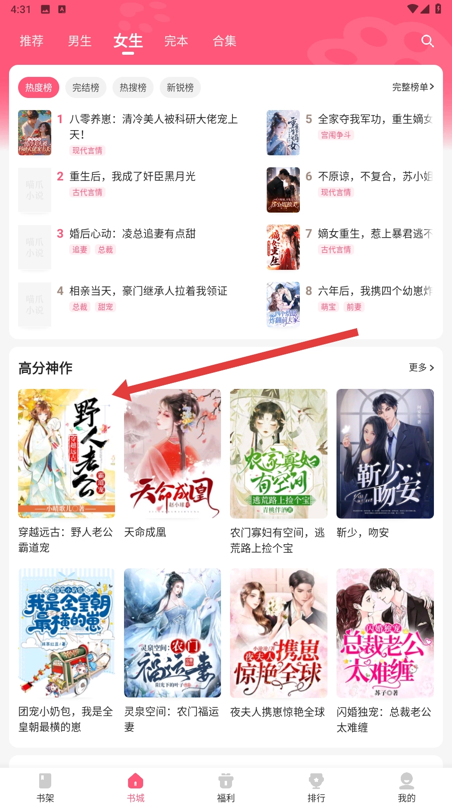 在书城的【女生】分类里,你可以找到像《穿越远古:野人老公霸道宠》这类小说,点击就能进入阅读界面啦。