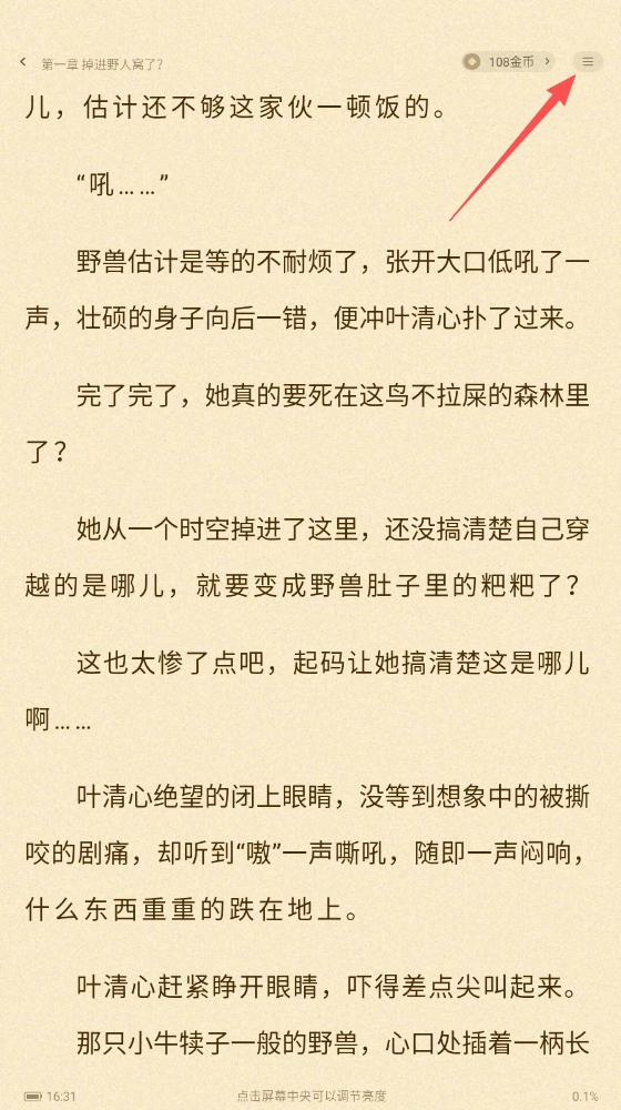 进入阅读界面后,点击右上角的菜单按钮,就能展开功能选项了。