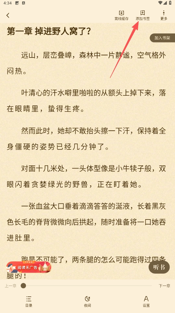在展开的选项里,我们可以点击【添加书签】,这样下次想继续阅读这一章节时就会更方便啦。
