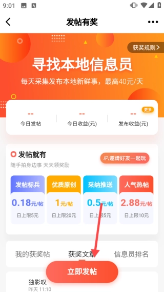 打开软件,点击页面中的【发帖有奖】进入下一界面