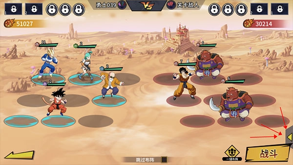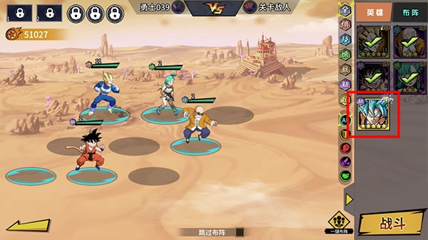 点击头像即可让英雄上阵,左侧区域支持排兵布阵,通常把肉盾型英雄放在前排,接着安排输出型英雄,辅助类英雄则放在最后一排。