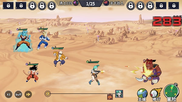 超次元大冒险是一款改编自热门动漫《龙珠》的二次元冒险养成游戏,游戏高度还原了众多超级赛亚人的经典造型,能让你重温原汁原味的龙珠记忆。悟空、贝吉塔、悟饭、特南克斯等角色都会登场,你可以自由抽卡,还有超多福利可以领取。龟仙岛、武道会等经典场景将通过战斗解锁冒险,你可以组建自己的团队,探索龙珠世界的特色画面,挑战创新玩法!