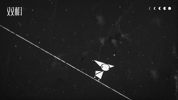 《双相》里的主角“我”,既是玩家在游戏中操控的角色,形象主要由大小不一的三角形、圆形等基础几何图形组合而成,部分设计参考了“小丑”元素,整体风格简约。不过,这看似简洁单薄的外形和波澜不惊的表情背后,藏着复杂的内心纠结与挣扎。把主角形象放大细看会发现,眼睛旁的小三角形,实际是滴落的泪珠——就像现实中,人们往往只看到“小丑”夸张的笑脸,却鲜少留意到他们眼角的泪滴。