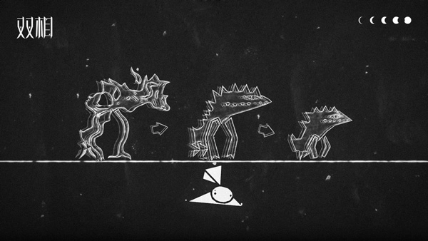 游戏里还把病症本身具象化成了“猛兽”。这个“猛兽”和主角一样由玩家操控,却又压制着主角——就像疾病对人的掌控力。它的形象主要参考蜥蜴设计,因为“双相情感障碍”和蜥蜴“冷血动物”的标签在感性认知上有不少共通点。所以这个角色多用三角形构成,也是想传递出尖锐的感觉。随着剧情发展,游戏里的“猛兽”还会有不一样的形象变化。病症是无情的,“猛兽”也很可怖,但在“我”迷茫前行的过程中,终将找到与它平和共生的方法。