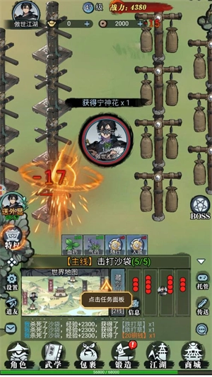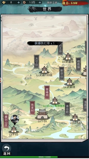 点击世界地图,就能前往各个不同的地点,通过刷怪获取金币以及各类材料。