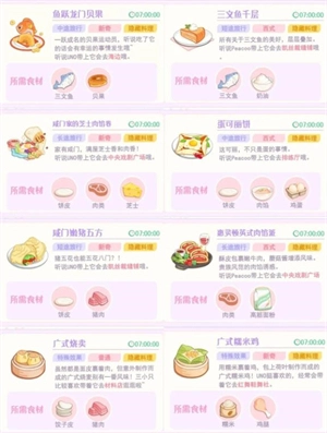 游戏里有各式各样的菜谱,涵盖半成品与完整料理两类。半成品指的是无法直接携带、需经二次加工的食物;完整料理则能让角色随身携带。要留意的是,烹饪一次或许要花费数小时,而且部分食材的制作会用到半成品。下面是隐藏料理的介绍。