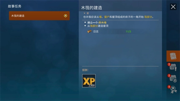 完成左侧的任务能够推动剧情的进展,持续完成任务以开启你的漂流生存冒险。
