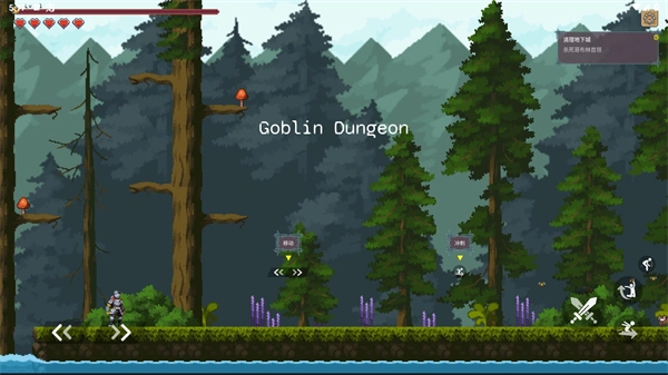 游戏的左侧区域用于操控角色进行移动,右侧则配备了攻击、跳跃、冲刺以及潜行的功能按键。