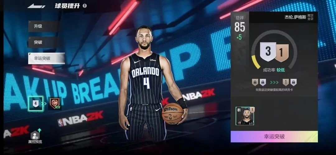 ②幸运突破(要是突破材料不够,又想提前突破的话可以试试这个功能,不过还是存在失败的概率,失败了材料是不会返还的,建议运气好的玩家多尝试,祝各位都能多多实现5+1突破成功)