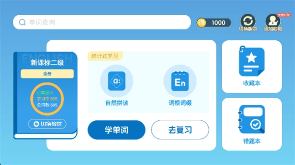 根据自己的需求选择教材后软件会自动切换