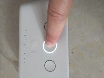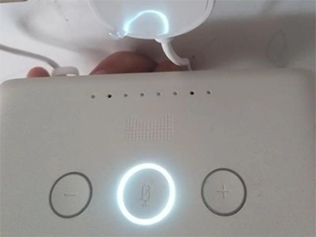 长按天猫精灵顶部的中间按钮,保持按压状态直至按钮变白,然后松开手指。