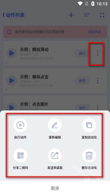 若要编辑动作,可点击动作右侧的三点图标,再选择对应的编辑操作。