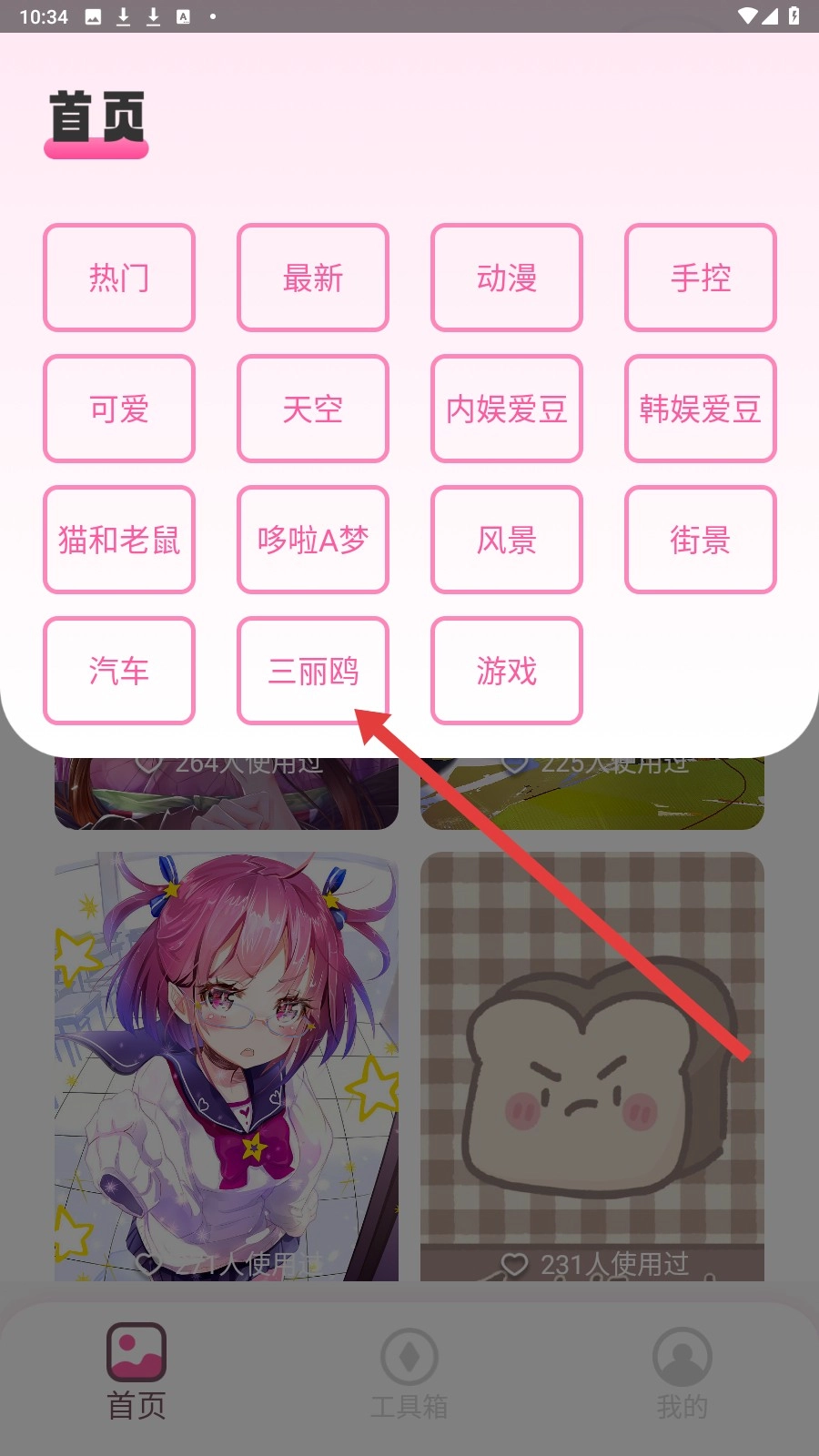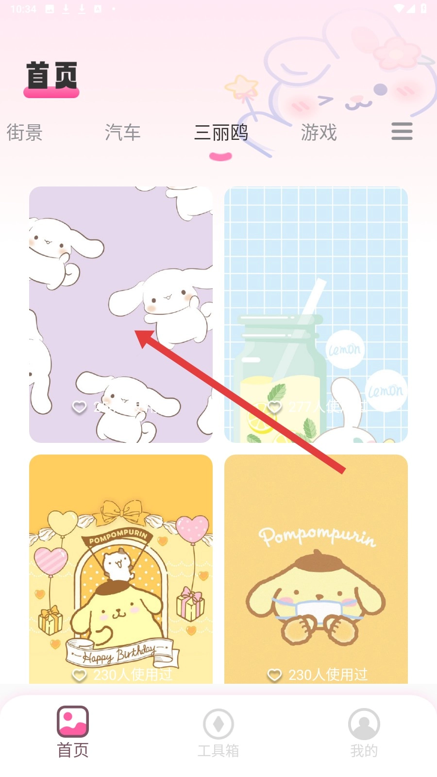 在分类选项中点【三丽鸥】分类,进入对应壁纸页面。
