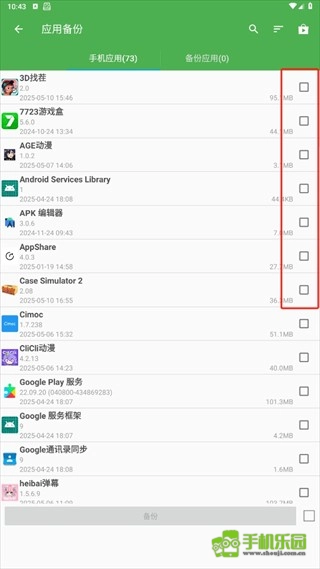 浏览应用列表,选中你想要备份的应用。