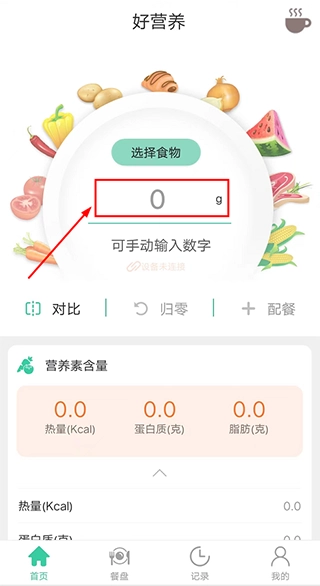 我们可以手动录入食品重量,也可以读取秤端的食品重量。