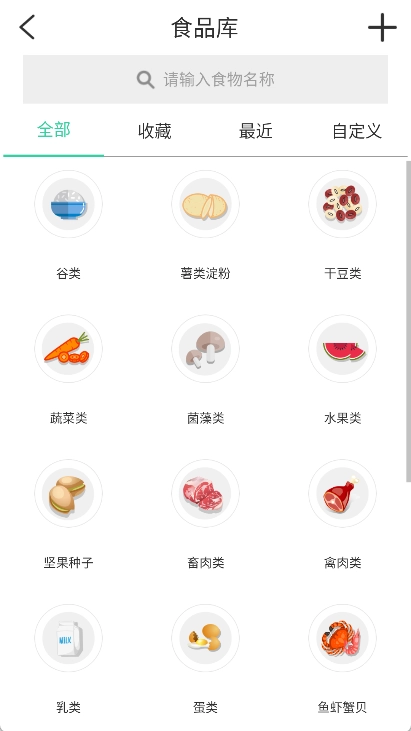 - 食物搜索:支持名称和分类搜索。