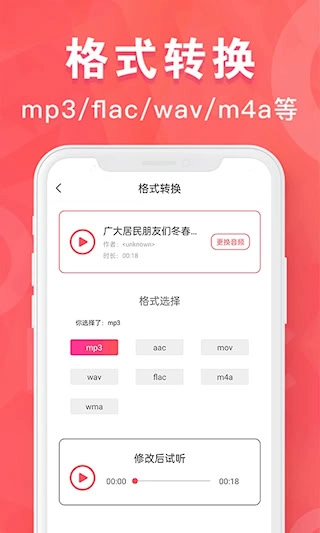 格式转换功能支持MP3、AAC、MOV等多种常见音视频格式的相互转化,能够满足不同播放场景下对文件类型的需求。