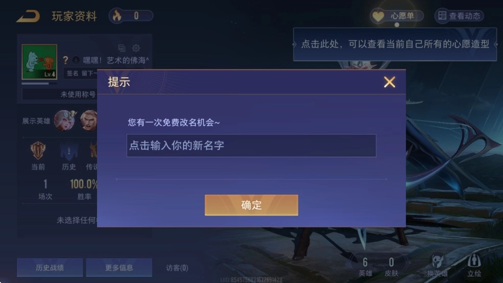 传说对决体验服怎么改名
