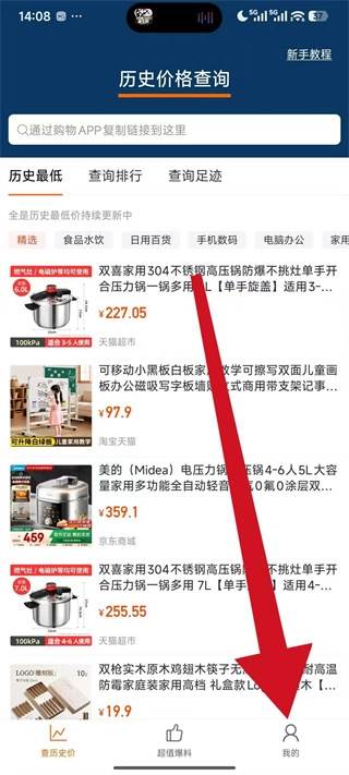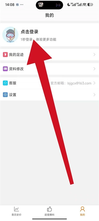 打开历史价格查询功能后,点击底部导航栏中的“我的”选项,即可进入个人中心页面。