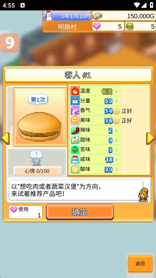 点击客人向客人推销合适的汉堡