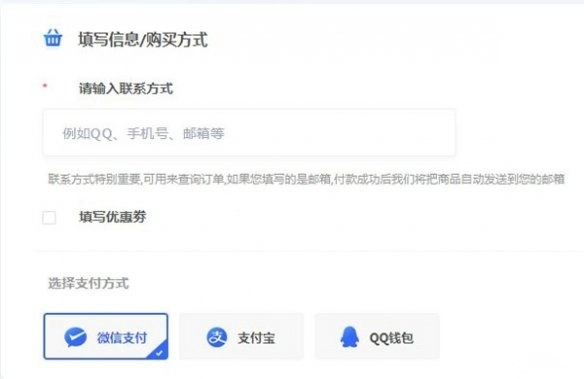 2、在您选定商品类型之后,请优先填写您的联系方式。