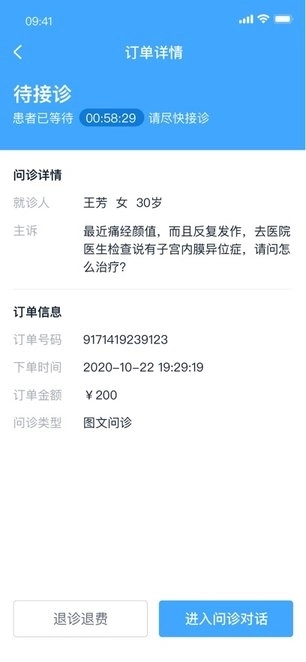 接收问诊:消息中心会实时推送新患者的信息,点击“接诊”按钮即可进入与患者的聊天窗口。