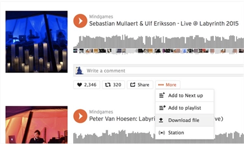 在SoundCloud网页端,当您登录自己的SoundCloud账户后,只需点击波形下方的文件按钮,就能将SoundCloud歌曲转换为MP3格式。