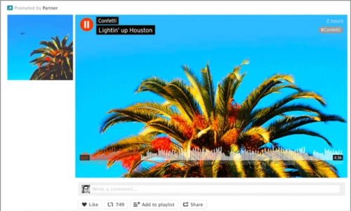 即便订阅了SoundCloudGo,推广歌曲依然会出现在播放列表里。以下是推广曲目在你的流中呈现形式的示例: