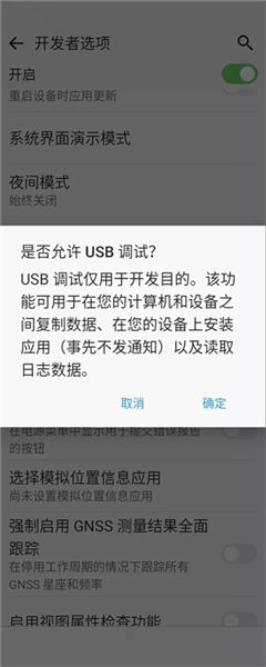 可以在「设置」-「开发者选项」-「Android调试」中进行查看。