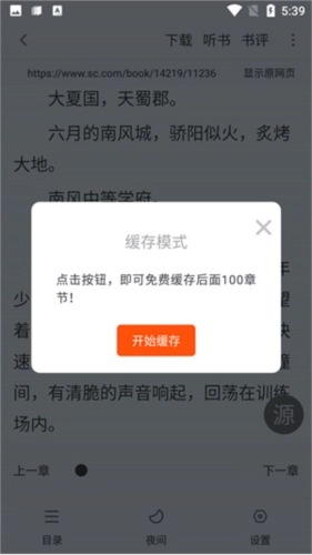 点击开始缓存即可进行小说/漫画的缓存和了!