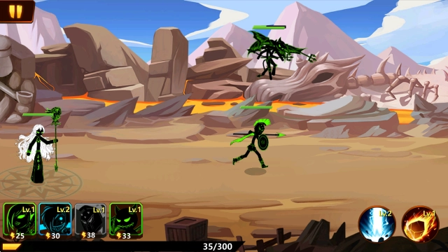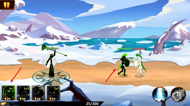 丰富多样火柴人兵种可以去解锁,让你能够灵活的根据敌人阵容进行调整,并且还能升级来提升战力。