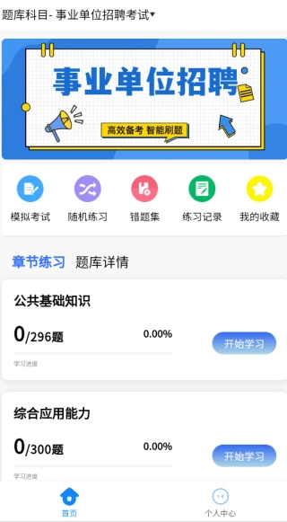 首页设有章节练习、真题模考等多种刷题方式,还能为用户生成专属的个性化题库。