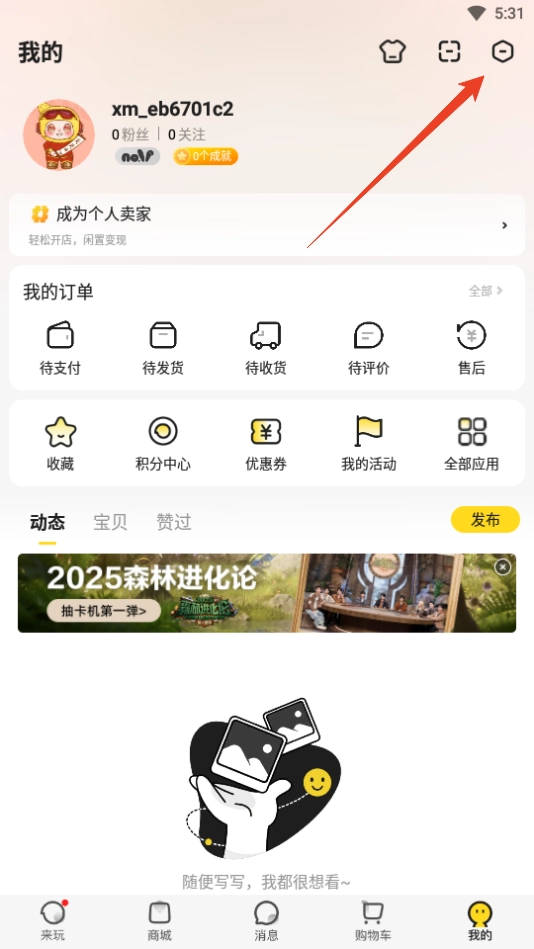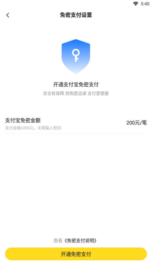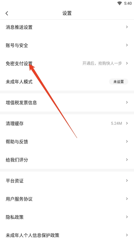 打开小芒应用,进入“我的”页面,点击右上角的“设置”图标,接着选择“免密支付设置”选项。