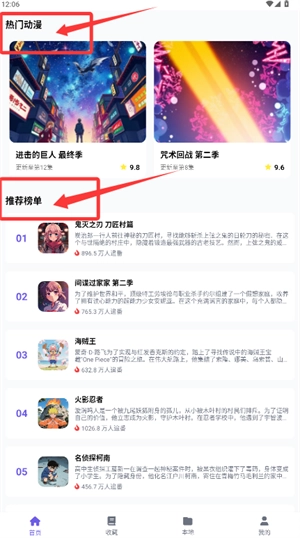打开应用首页后,你可以在热门推荐或者精选榜单里浏览,然后挑选出自己喜欢的动漫。