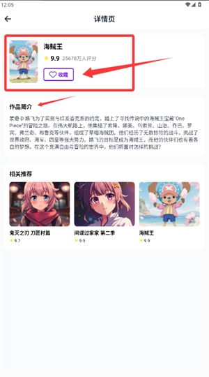 打开作品详情页面后,轻点收藏图标就能把这部动漫添加到个人收藏夹里。