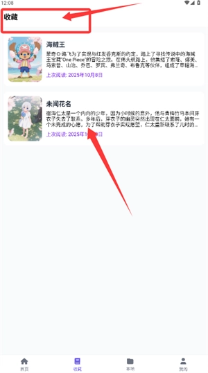 通过底部导航栏进入收藏页面,就能随时查看已保存的动漫作品列表。