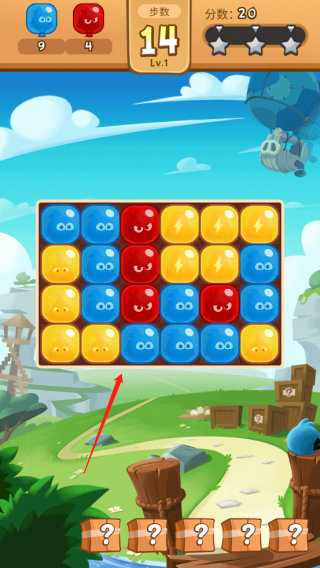 2、进入游戏后,红框标注的是当前关卡需要收集的目标气球,白框显示的是剩余步数。