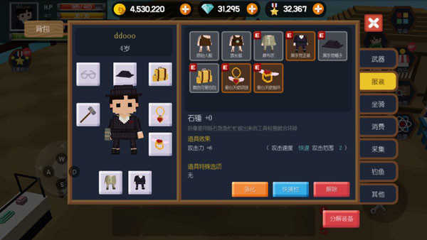 4、包裹界面中,服装、武器等模块也能增强你的属性