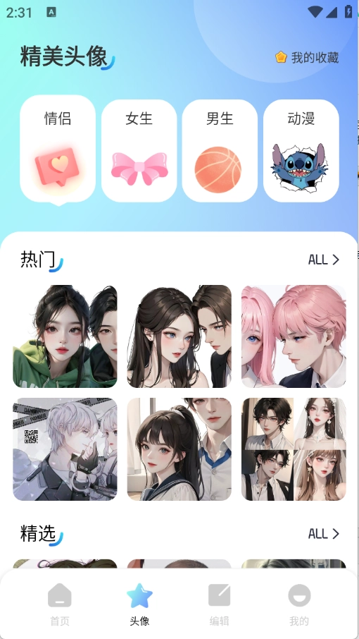 头像页面包含了很多的头像资源。