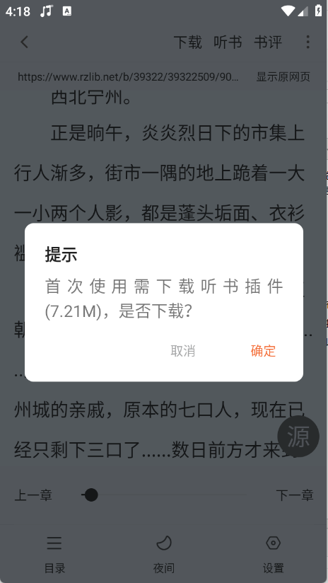 进入之后点击进入详情页,然后点击屏幕任意位置,再点击右上角的“听书”按钮。