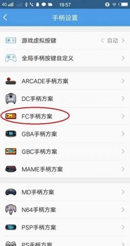 8、根据自己玩的游戏类型,每次进入游戏前先到手柄设置,找到自己玩的游戏类型,进行键位设置,返回在进入游戏。本教程以"FC手柄方案"进行设置;