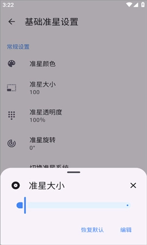 3、在【准星设置】一栏可以设置准星大小、置颜色和透明度,