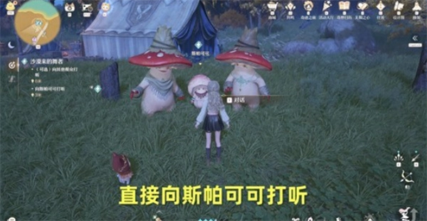 6、跟随指引找到光点,选择等待,观看纱之公主与露可可的对决,向斯帕可可打听情况