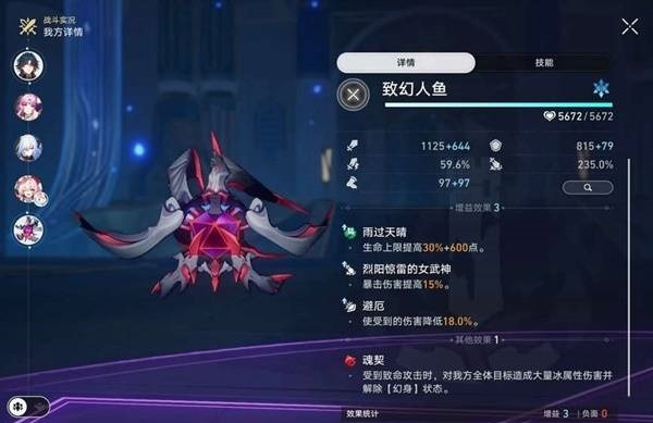 致幻人鱼的生命值与角色自身的基础血量相关,大概是原有数值除以2的程度,其速度同样和原角色的速度属性有关联,因此只要全力提升生命值属性,就能够培育出拥有6000点血量的“大肥鱼”。
