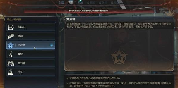 播片结束后会让我们捏脸和选择特质技能。关于特质看玩家的个人游戏风格,笔者选择的是执法者。